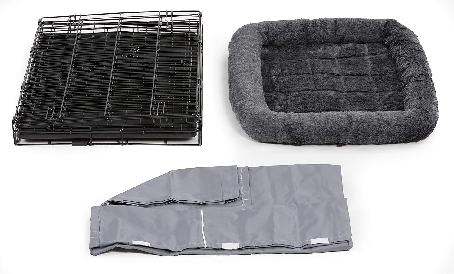 • Includes: Two-door crate, gray bed, crate cover