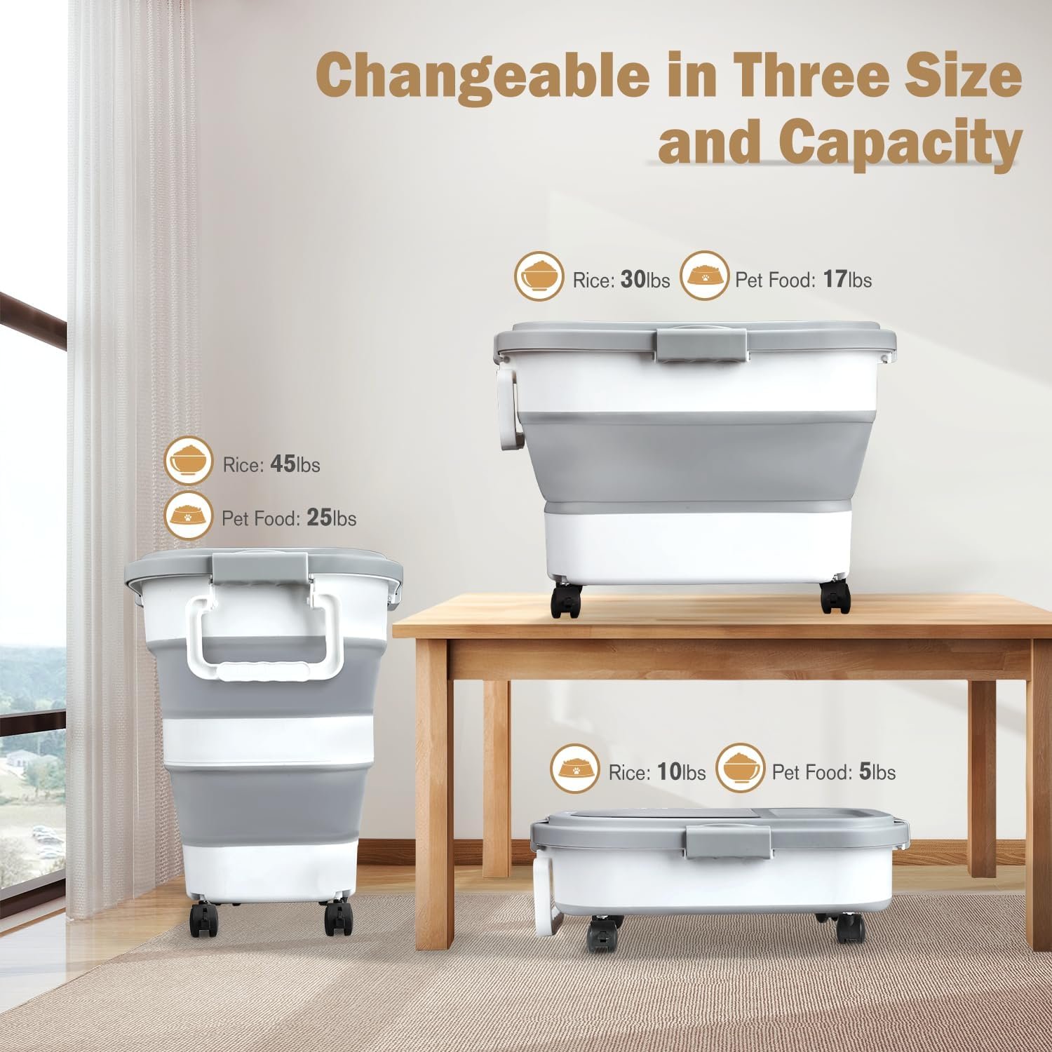 The Collapsible Airtight Rice Storage Container is a practical, durable, and space-saving solution for modern kitchens. Its airtight design, foldable flexibility, and thoughtful accessories make it ideal for storing grains, flour, or pet food while maintaining freshness and organization.